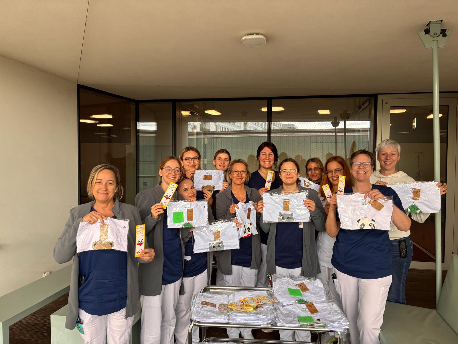 Nachdem wir im Herbst 2025 vom Universitätskinderspital beider Basel (UKBB) und dem Kispi Zürich die Meldung erhielten, dass sie keine P-Shirts mehr hätten, haben wir mit eurer Hilfe mehrere neue Bestellungen aufgegeben und durften die ersten P-Shirts vor einigen Tagen dem UKBB übergeben.